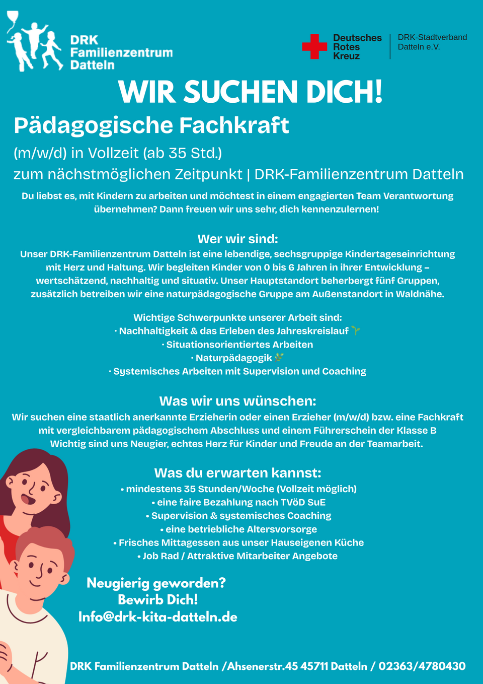 Interesse? Dann melde Dich einfach per Mail an info@drk-kita-datteln.de – wir freuen uns auf Dich!