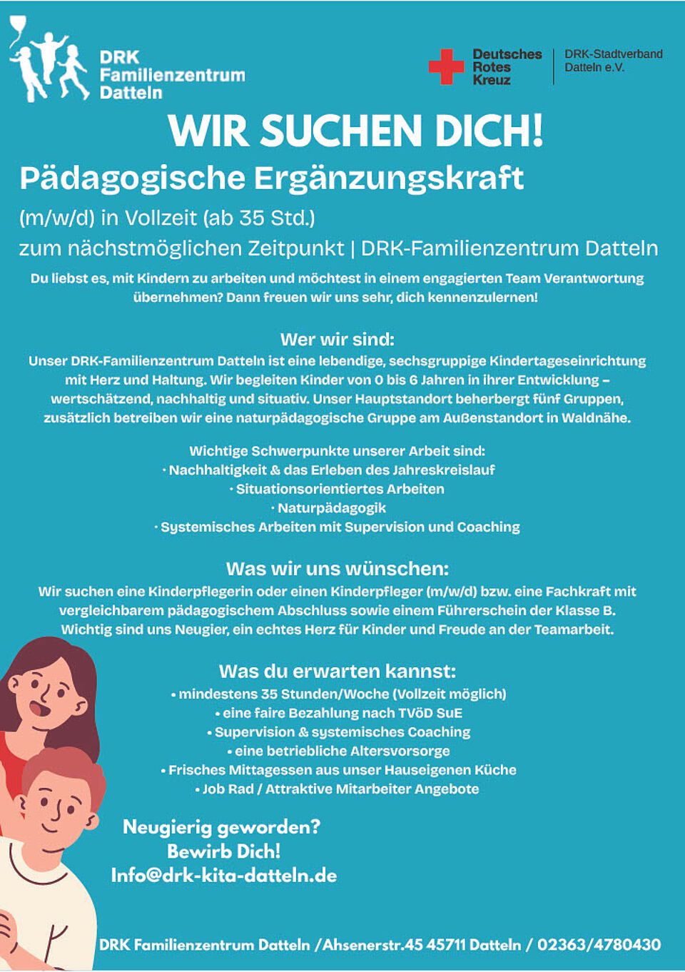 Interesse? Dann melde Dich einfach per Mail an info@drk-kita-datteln.de – wir freuen uns auf Dich!